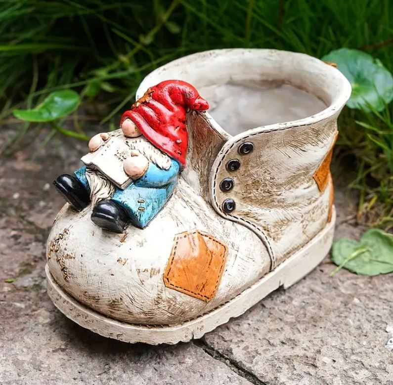 Dekorativní květináč - skřítek na botě