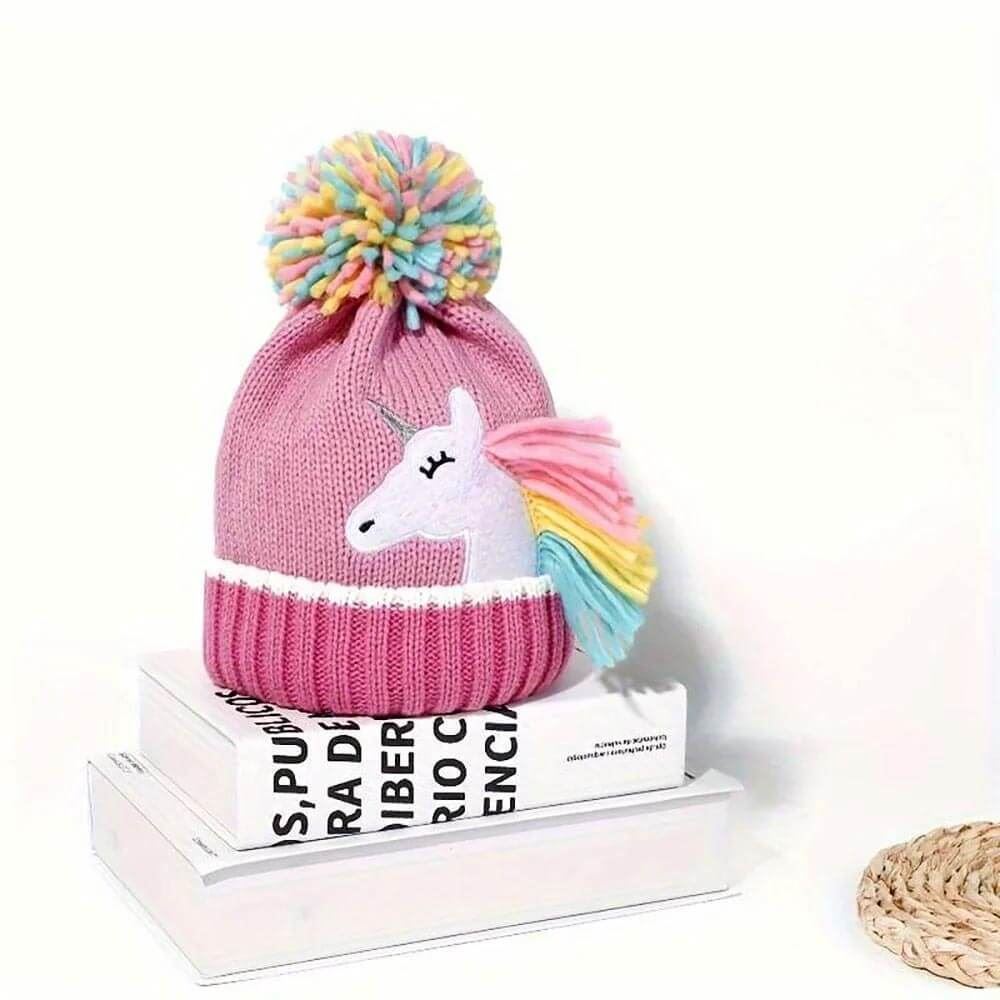 Dopřejte svému dítěti tu pravou zimní radost s touto roztomilou dětskou zimní sadou s motivem jednorožce. Sada obsahuje pletenou čepici a rukavice, které nejen zahřejí, ale také vykouzlí úsměv na tváři každé malé princezny. Čepice je ozdobena veselým jednorožcem a velkou, barevnou bambulí, která přidává hravý a kouzelný vzhled. Rukavice v růžové barvě dokonale ladí a udrží dětské ručičky v teple.