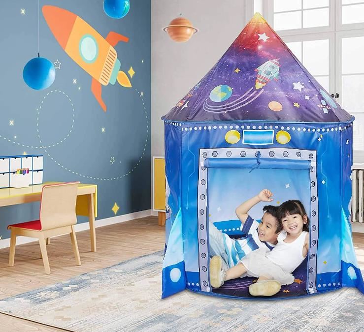 Každé dítko touží po svém vlastním koutku, kde by se jen tak mohlo schovat před světem a snít. A proč mu jej nedopřát! Tento nádherný stan s motivem vesmírné rakety nejen splní svůj účel jako útulná skrýš v dětském pokojíčku, ale také zajistí dlouhé hodiny plné zábavy, při níž bude hlavní roli hrát fantazie