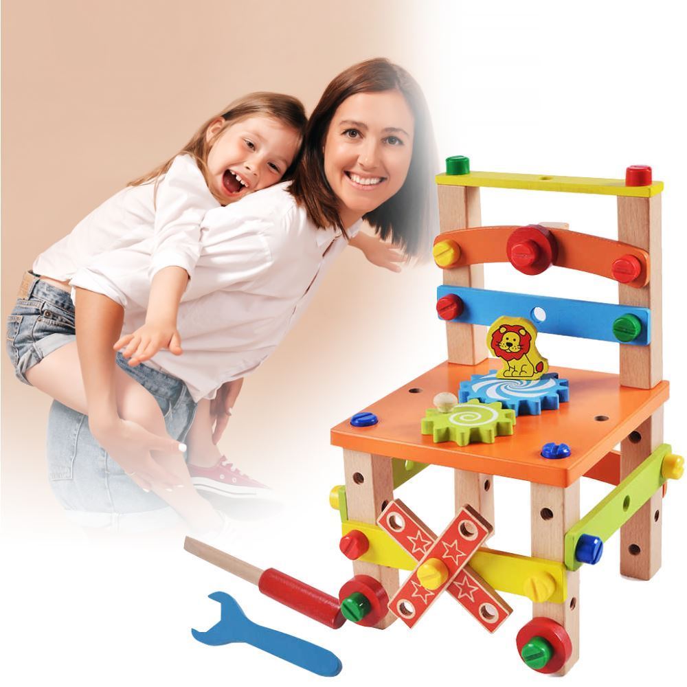 Dřevěné hračky jsou oblíbené, protože šetří naše životní prostředí. Vzdělávací dřevěná židlička toho ale skrývá mnohem více než jen materiál. Výborně totiž podporuje děti v jejich kreativitě a manuální zručnosti. Mohou si samy poskládat a sešroubovat svoji židličku. Ze židličky lze však sestavit i jiné tvary a hračky. K tomu jim pomůže dřevěný šroubovák a klíč. Dřevěná židlička toho má zkrátka hodně co nabídnout.