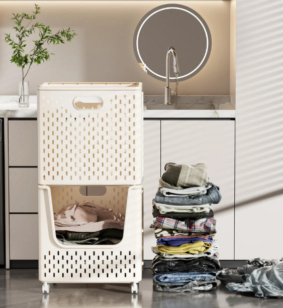 Dvoupatrový koš na prádlo na kolečkách