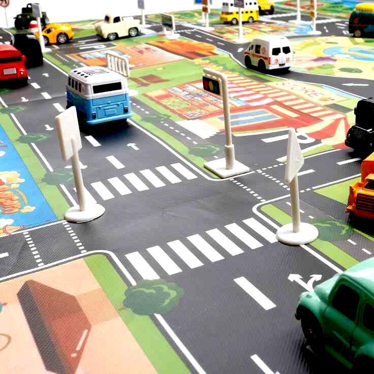 Máte doma malé a zvídavé uličníky? Pak se jim tato podložka města bude určitě líbit. Jednoduše si ji mohou rozložit třeba v pokojíčku a vládnout celému městu. Součástí balení jsou i dopravní značky.