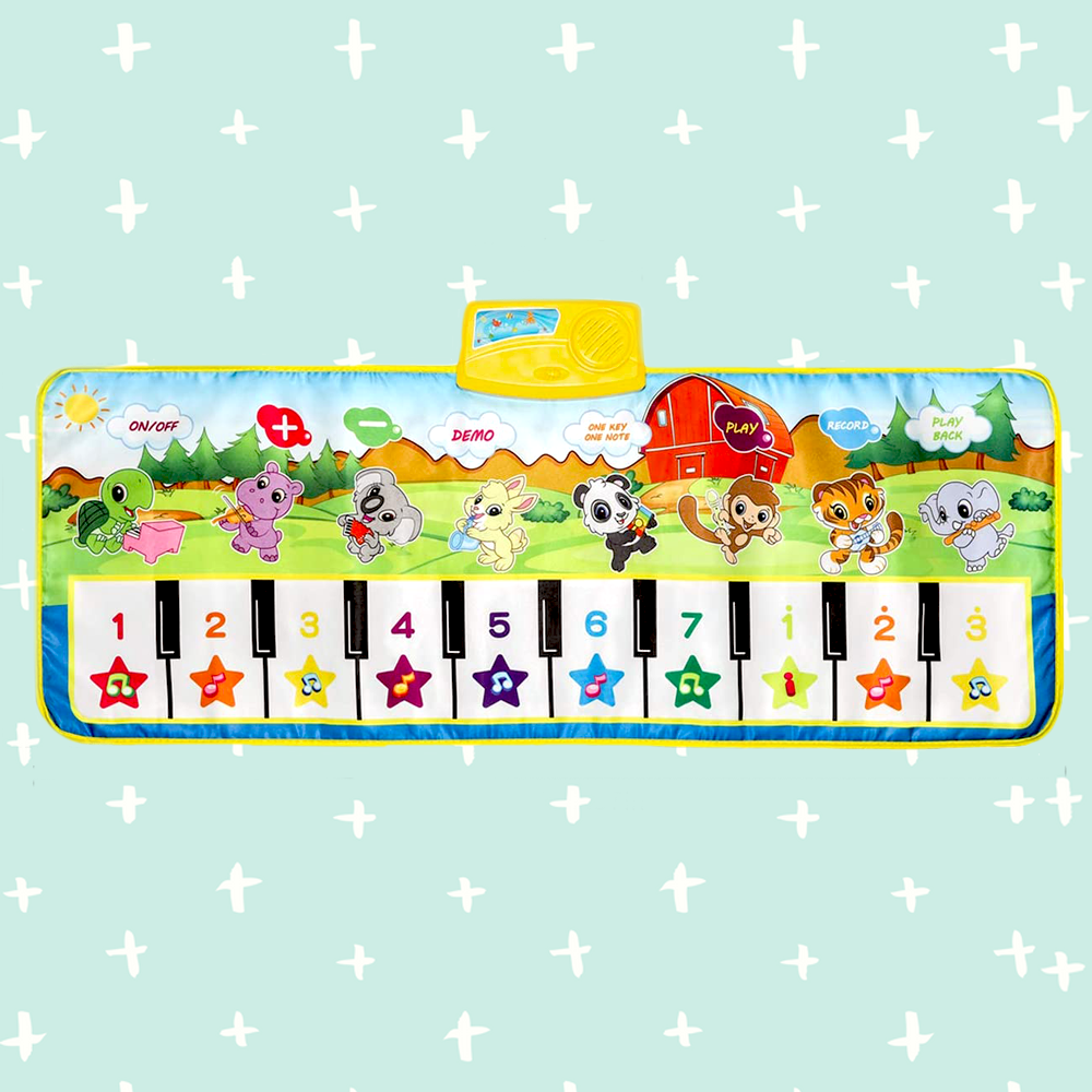 Hrací podložka je opravdu hudební vyžití pro vaše děti! Kdo z dětí nemiluje hračky se zvuky? Ti nejmenší se od zvuků nemůžou odtrhnout a pro ty větší je to přinejmenším výzva. Díky piánu si totiž zahrají na skladatele. Veselé barevné piáno nabízí několik zvířátek a po zmáčknutí na dané zvířátko hrajete přiřazeným nástrojem. Kromě toho nabízí hrací podložka i jiná zajímavá tlačítka. Děti ovládají hlasitost zvuků, přehrávají různě nahrané melodie nebo nahrávají nové.