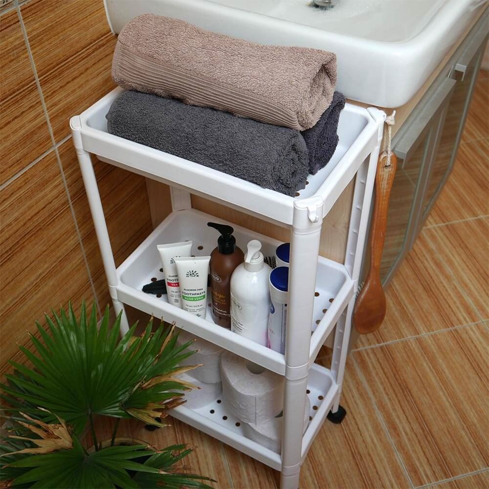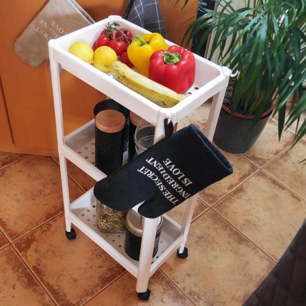 Tři patra zajistí úložný prostor například pro hygienické potřeby v koupelně, nebo pro sypké potraviny ve spíži, či pro kancelářské potřeby v pracovně. Dejte sbohem přeplněným poličkám a skříňkám.