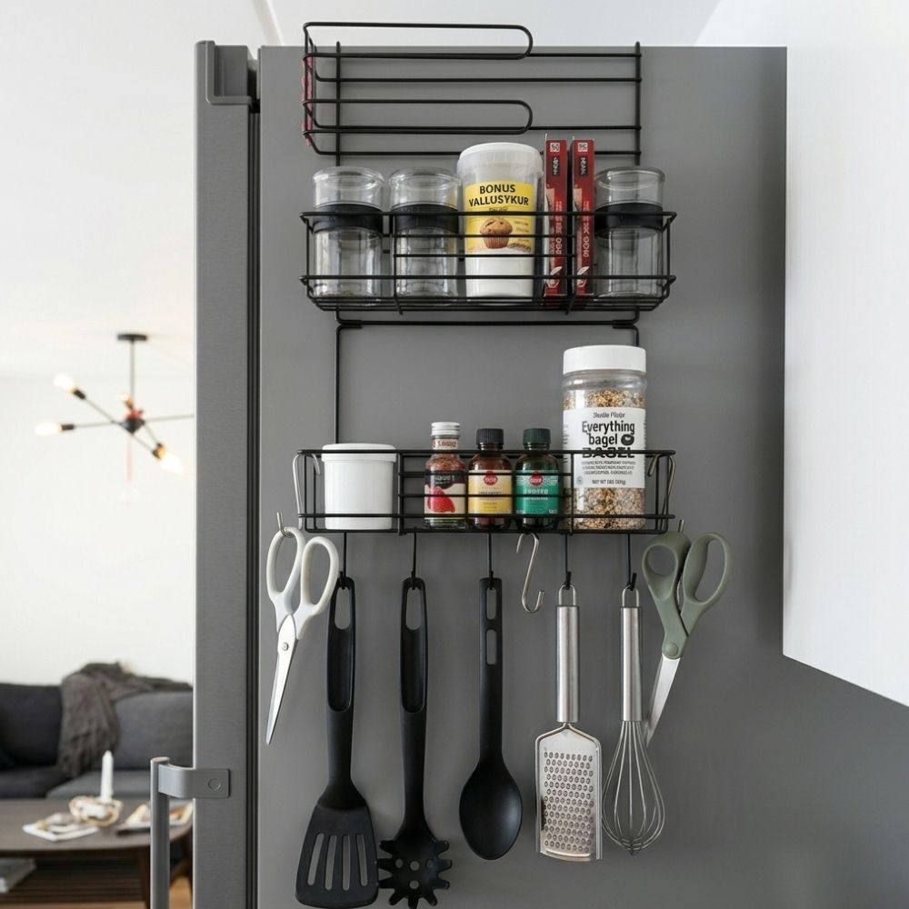 - 1x kovový organizér na lednici