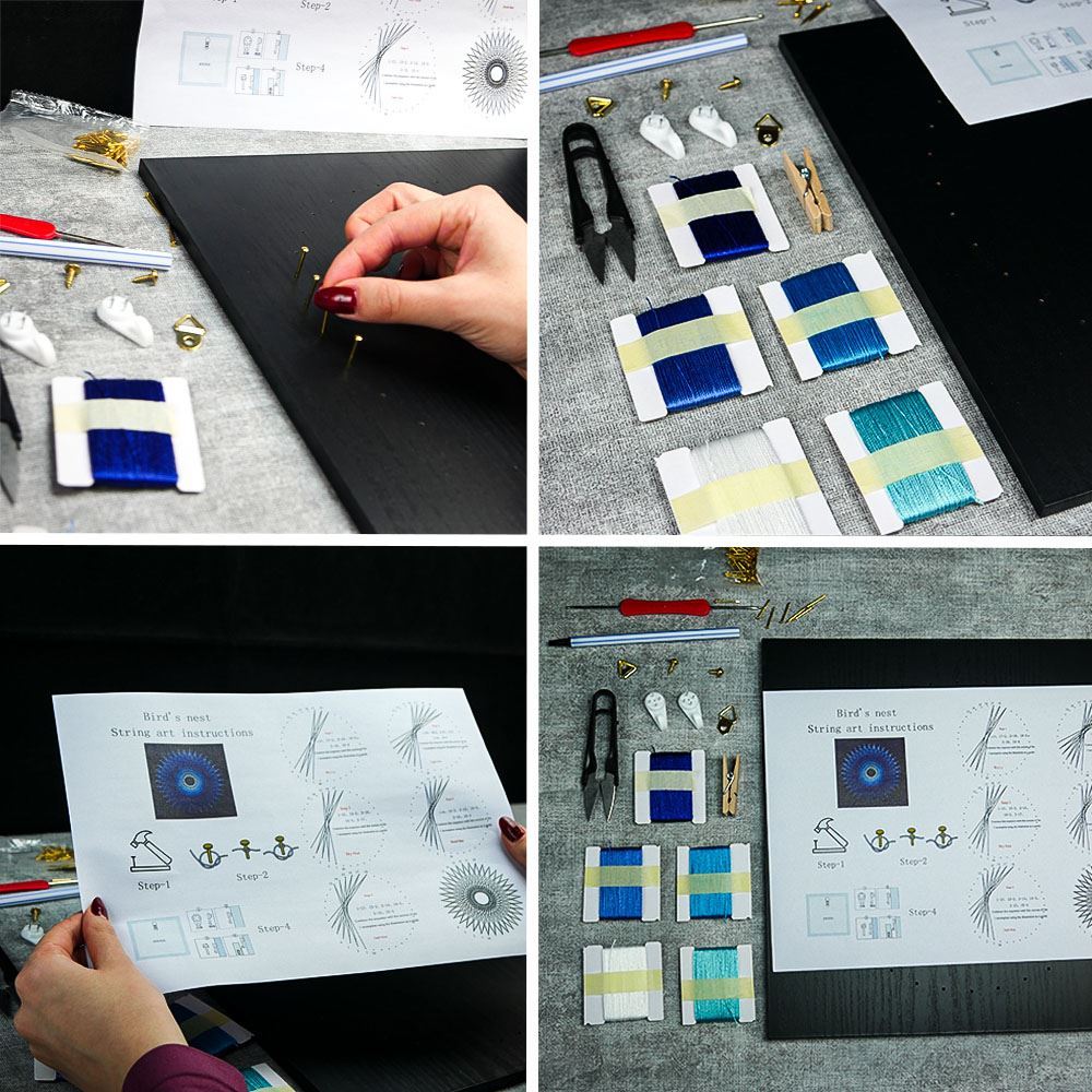 - sáček s hřebíky, sáček s doplňky pro zavěšení hotové mandaly na zeď (je potřeba kladívko pro zatlučení hřebíků, není součástí balení)
