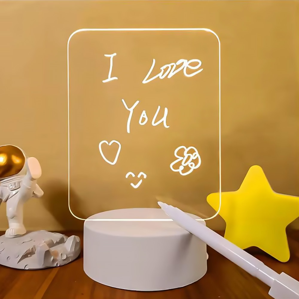 Představujeme vám kreativní stolní lampičku na vzkazy – originální způsob, jak sdělit svým blízkým důležitá upozornění i milé pozdravy. Oproti běžným papírovým vzkazům či lepicím lístkům vaše zpráva díky lampičce nejen nezapadne, ale bude stylově osvětlena a nepřehlédnutelně vystavena na očích. Ideální doplněk na noční stolek pro přání krásných snů i na pracovní stůl, kde připomene neodkladné úkoly. Napíšete rychle vzkaz přiloženým fixem, a jakmile rozsvítíte lampičku, sdělení okamžitě upoutá pozornost.