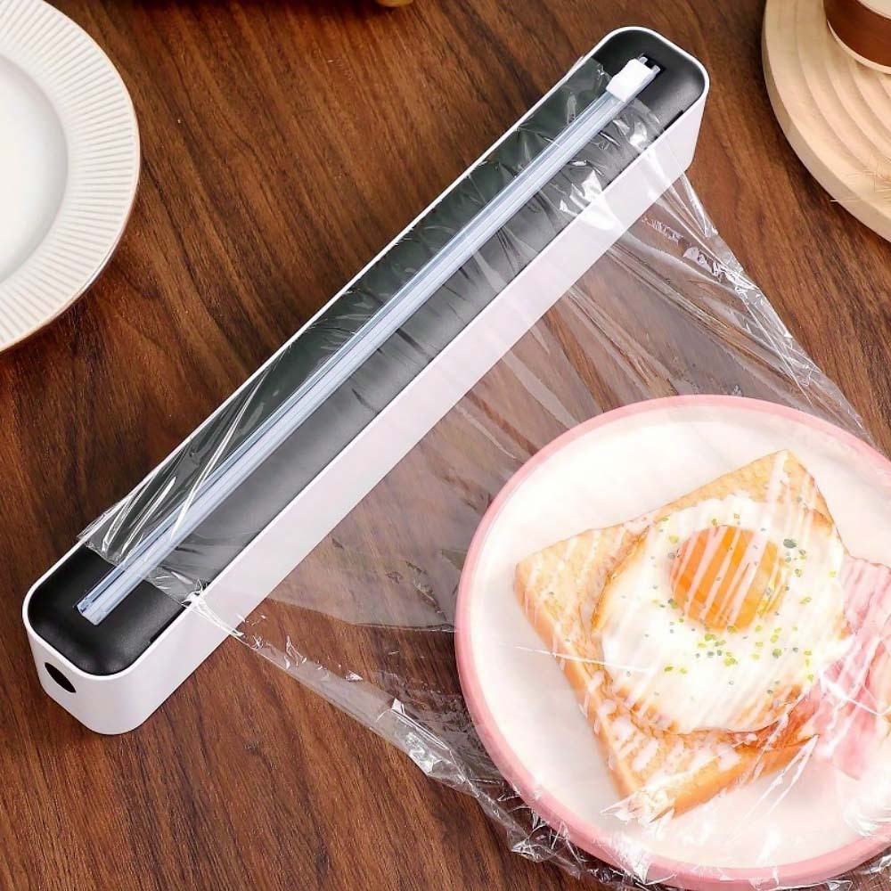 Zásobník je vybaven praktickou zabudovanou řezačkou, která zajistí rychlé a přesné oddělení fólie – bez nutnosti hledání nůžek či riskování zmuchlaného kusu. Usnadněte si přípravu svačin do školy i do práce a ušetřete si čas i nervy.