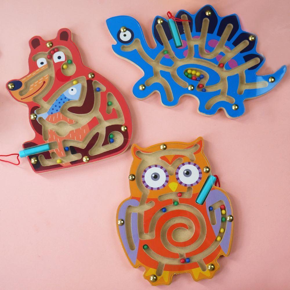 Magnetické bludiště je veselý a barevný hlavolam pro děti. Pomocí magnetické tužky se snažíte dostat kuličky do cíle. Zábavná hra pomáhá dětem rozvíjet motoriku a logické myšlení. Nažhavte dětem mozkové závity a procvičte šikovné ručky zábavným způsobem! Děti se naučí soustředěnosti a schopnosti vyřešit problém, aniž byste je do něčeho museli nutit. Dětský magnetický labyrint je vyroben z přírodního materiálu - dřeva. Hraje všemi barvami, tudíž vaše dítě zaujme už na první pohled!