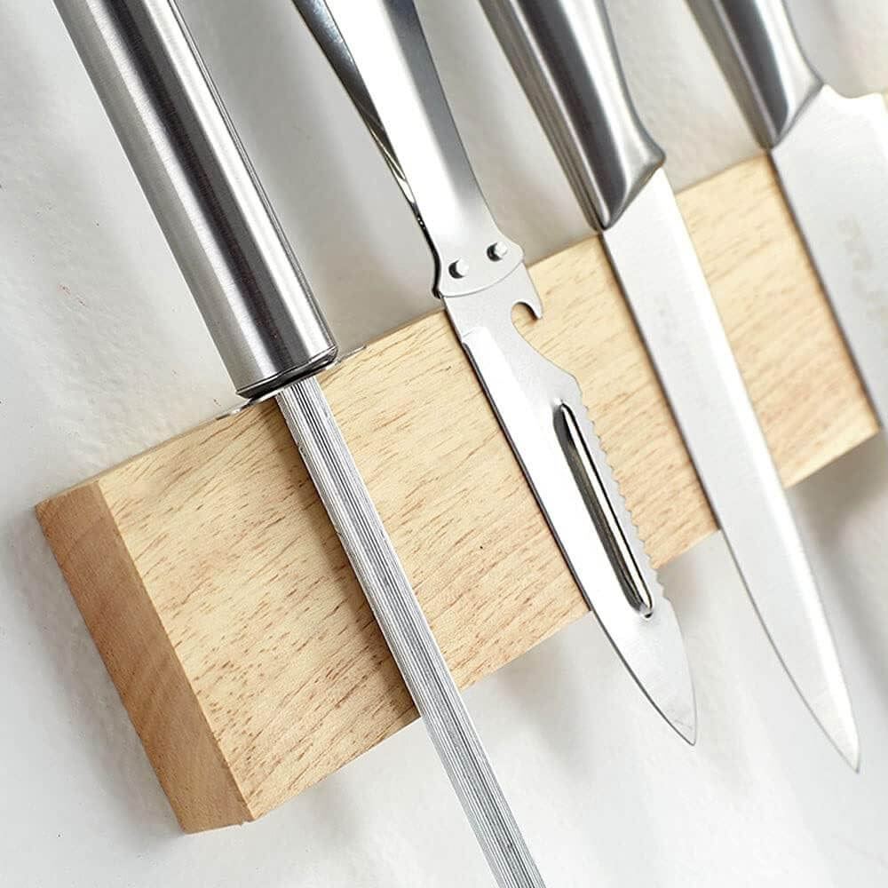 Ještě více místa v kuchyni a přehledně uspořádané náčiní! To všechno vám zajistí magnetický dřevěný držák na nože. Držák stačí jednoduše umístit přímo nad pracovní desku. Díky designovému provedení ozvláštní každou kuchyni.