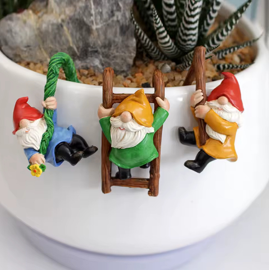Malý dekorativní skřítek na květináč 3 ks