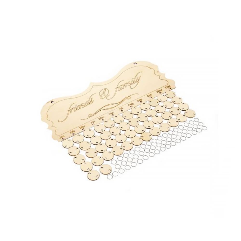 Už nikdy nezapomenete na narozeniny ani výročí. Tento krásný kalendář v přírodním dřevěném stylu je nejen dekorací, ale i praktickým pomocníkem. Sestavíte si ho snadno sami – stačí připsat jména a data na jednotlivé destičky. Skvěle se hodí do obýváku, kuchyně, kanceláře i školní třídy. Udržujte si přehled o důležitých dnech s elegancí a přehledem.