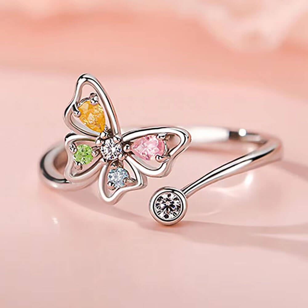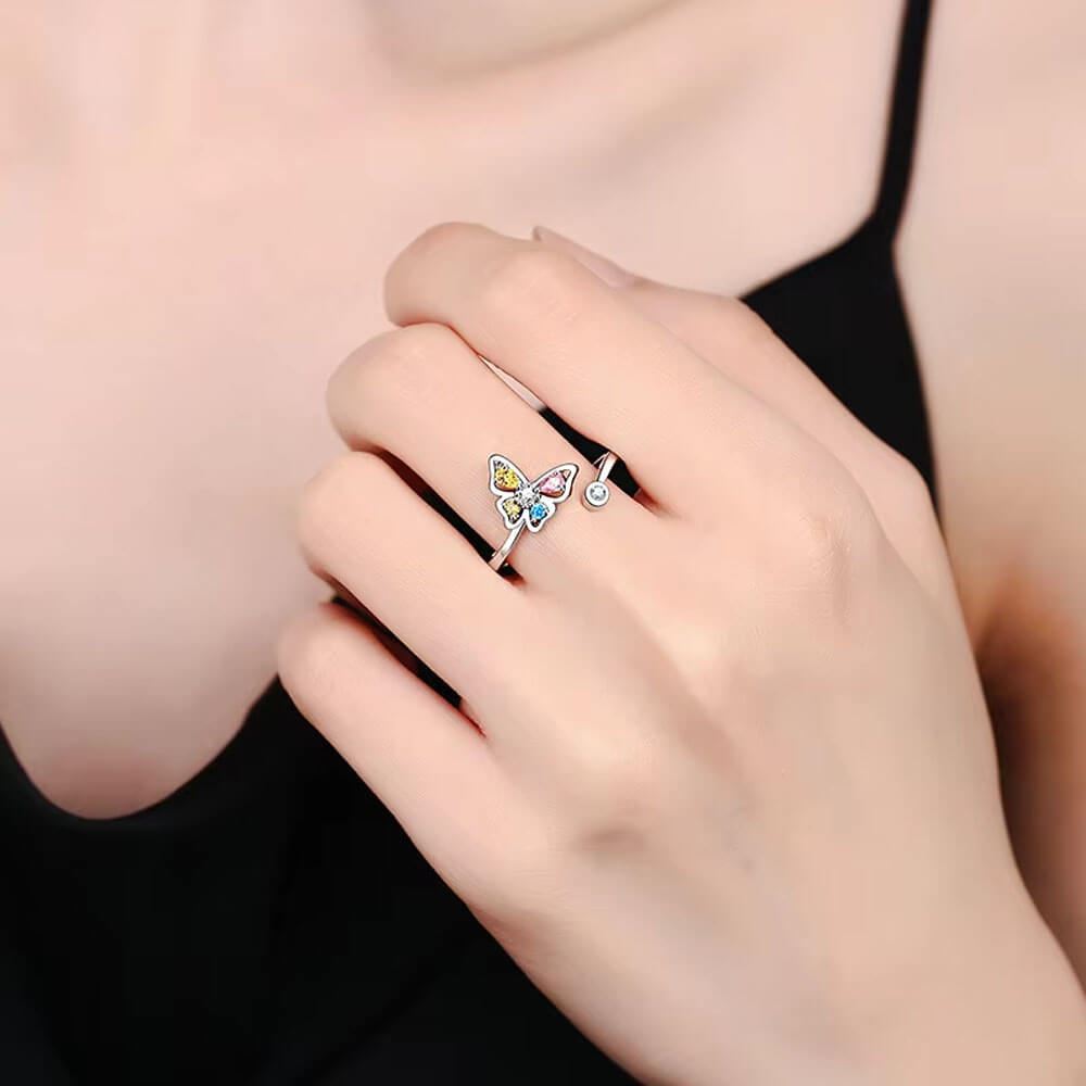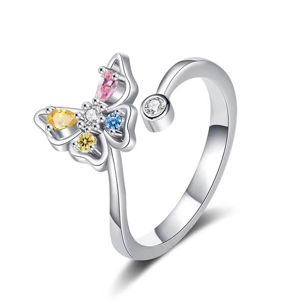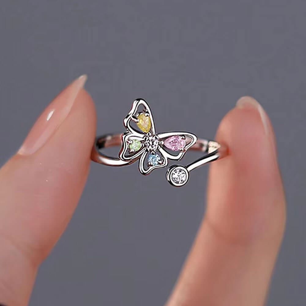 Elegance a minimalismus se spojují v tomto nastavitelném prstýnku s motýlkem, který jemně zdůrazní vaši osobnost a dokonale doplní každý váš outfit. Díky nastavitelné velikosti padne na každý prst.