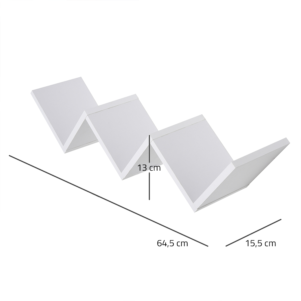 - Rozměry sestavené police: 64,5 × 13 × 15,5 cm