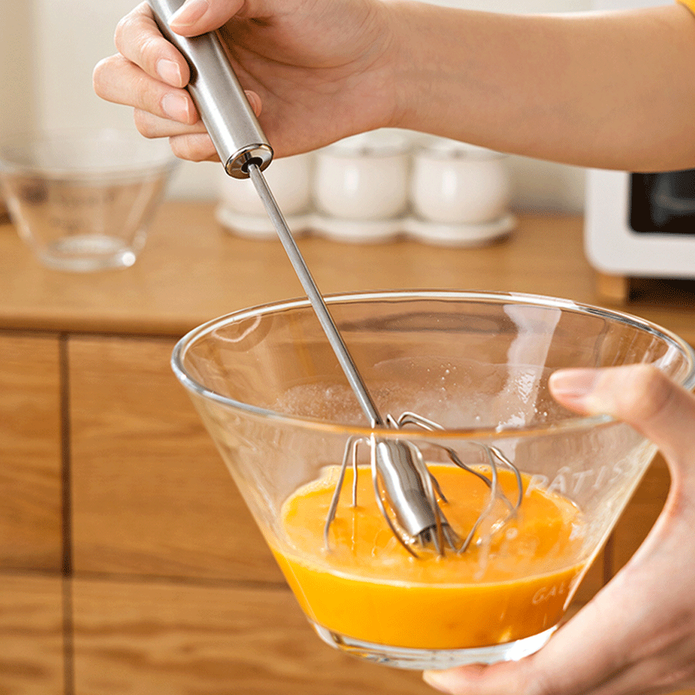 Ušetřete čas i námahu při vaření a pečení! Díky chytrému rotačnímu mechanismu snadno a rychle vyšleháte smetanu, bílky, omáčky či těsto na palačinky. Stačí lehce zatlačit, metla se sama roztočí a vy tak bez námahy dosáhnete dokonale hladké konzistence. Jednoduché použití, snadná údržba a univerzální využití – skvělý pomocník do každé kuchyně.
