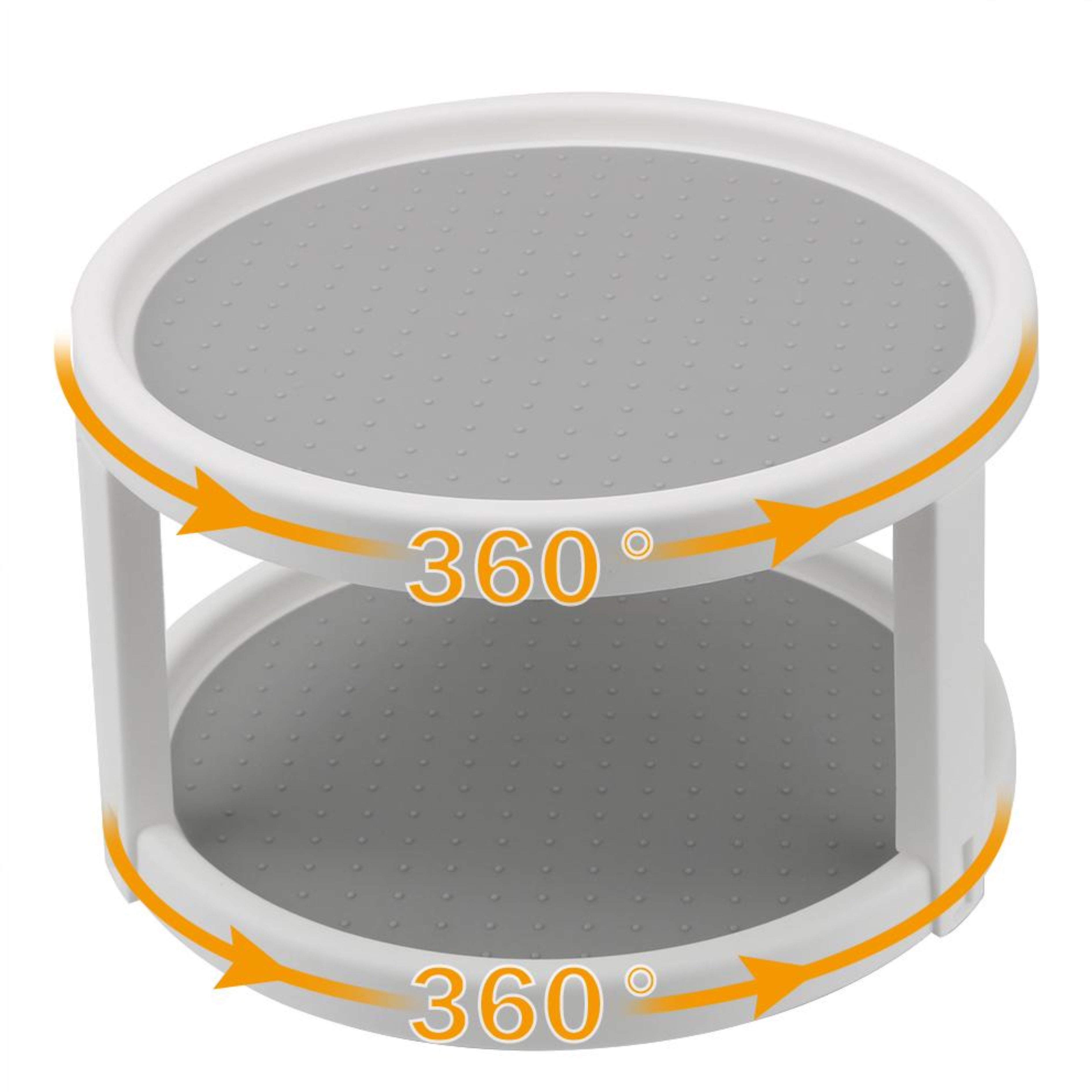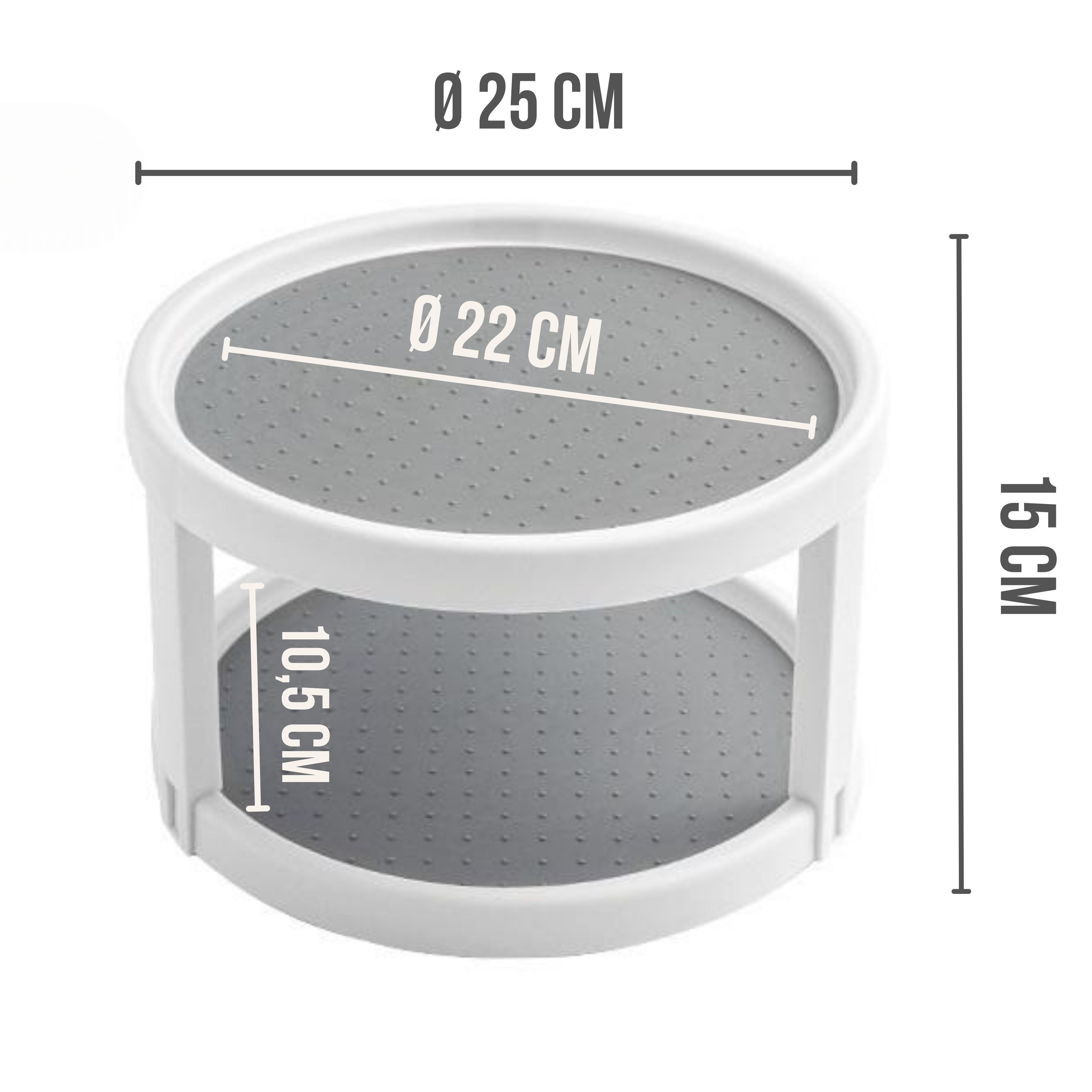 Zorganizujte si své věci do přehledného organizéru. Ideální pomocník nejen do kuchyně, uplatní se i jako držák kosmetických potřeb či drobného nářadí. Organizér má dvě patra, která mají protiskluzový povrch. Ten zajistí, že vám předměty nebudou klouzat během otáčení. Otočný systém je velmi užitečný. Velmi snadno a rychle totiž najdete to, co potřebujete.