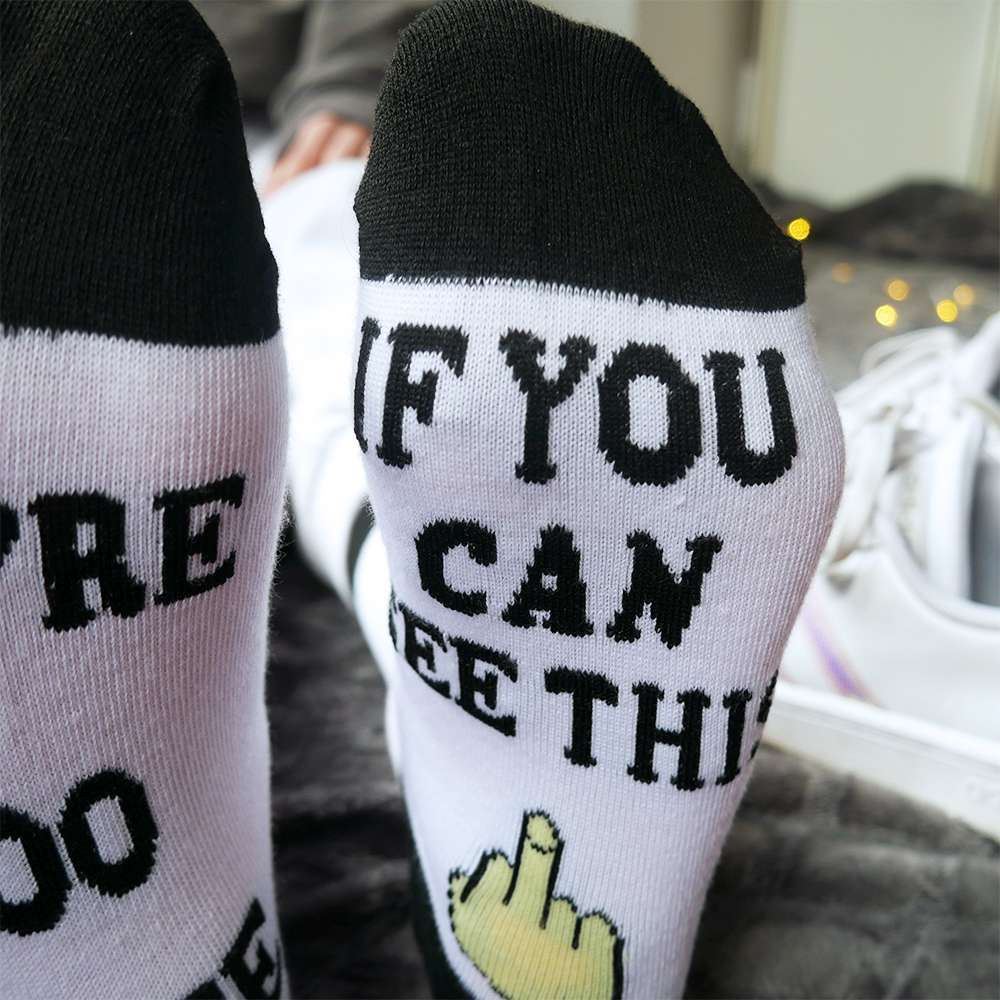 Také vás tak štve, když chcete mít chvíli pro sebe, a nikdo vám nedá pokoj? Mohli byste to opakovat donekonečna, ale jako by vaše slova putovala úplně opačným směrem. Pro chvíle, kdy nechcete být rušeni, a už vás nebaví všechno sáhodlouze vysvětlovat, si stačí navléct tyto ponožky, které všechno vysvětlí za vás! Protože každý, kdo se přiblíží na takovou vzdálenost, kdy dokáže přečíst nápis na