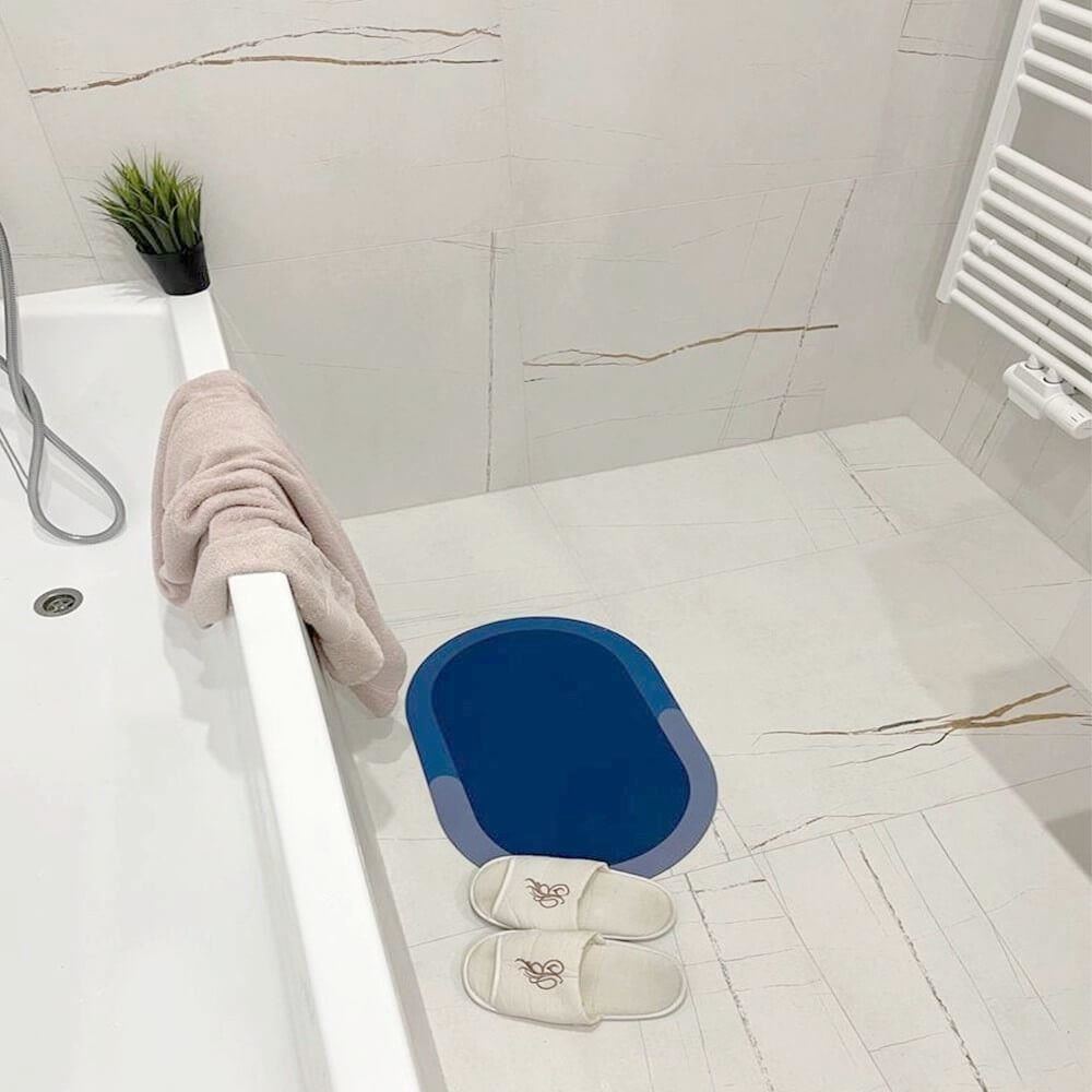 Rychleschnoucí podložka nejen do koupelny. Tuto podložku můžete využívat také na WC nebo jako podložku pod psí misku. Položka je vyrobená z velmi kvalitního a odolného materiálu, který zajišťuje absorpci vody. Podložka je tak velmi savá a můžete jí využívat znova a znova a nemusíte čekat než uschne. Spodní část podložky je doplněná a protiskluzový povrch, proto na podlaze drží doslova jako přibitá. Díky tomu je podložka velmi bezpečná. Při vylézání z vany nebo ze sprchového koutu se tak nestane, že by vám to na podložce podklouzlo.