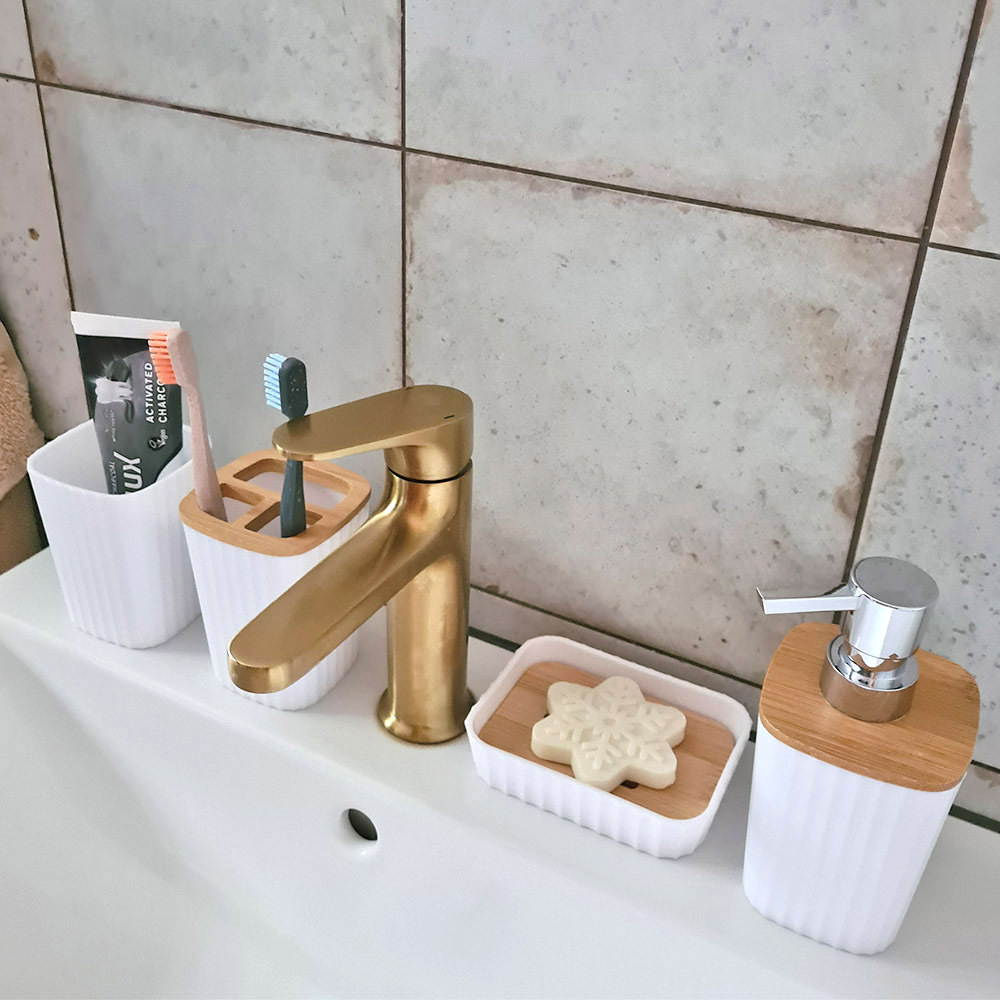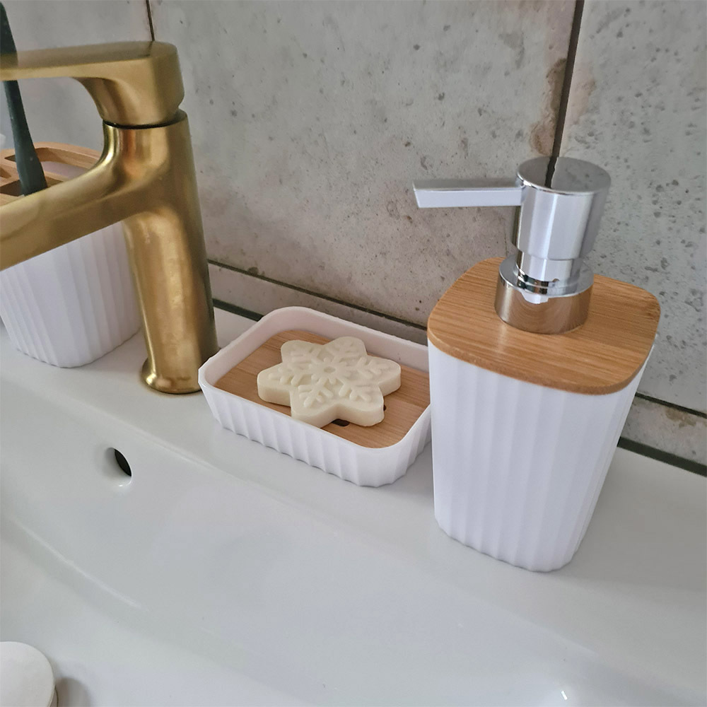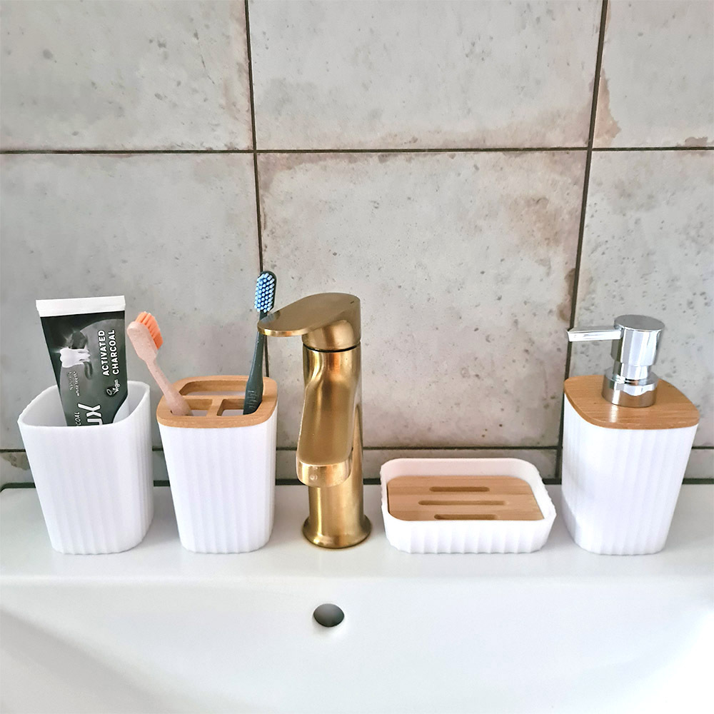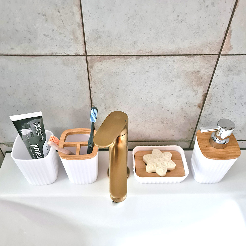 Máte pocit, že vaší koupelně něco chybí? Možná právě sada elegantních doplňků, která vdechne prostoru nový život. Tento set spojuje praktičnost s designem a promění i obyčejné umývání rukou v malý rituál. Každý kousek v sadě má své místo a účel – a vy tak konečně získáte nejen pořádek, ale i radost z každodenní péče o sebe. Skvělý tip i jako dárek pro každého, kdo má rád krásné a funkční věci.