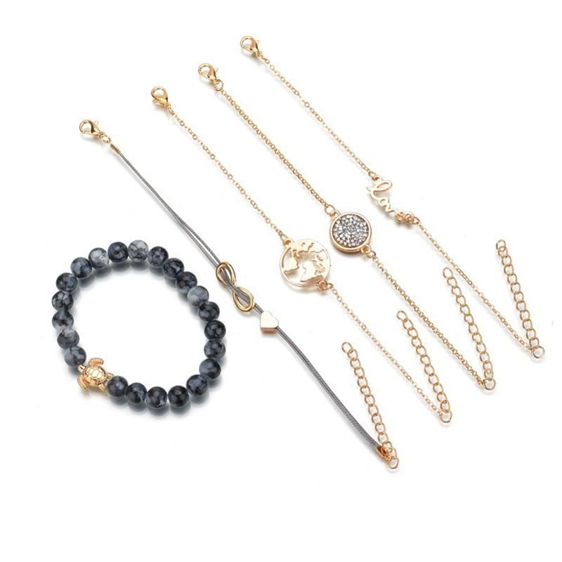 Sada 5 elegantních náramků v trendy provedení, které skvěle doladí každý outfit. Každý náramek je ozdoben unikátním přívěskem, díky čemuž tvoří stylový a osobitý doplněk. Noste je samostatně nebo všechny najednou pro maximální efekt.