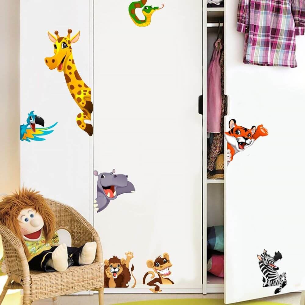 Proměňte dětský pokojíček v kouzelné prostředí pomocí roztomilých samolepek s motivy zvířat. Pokud vaše dítě miluje interaktivní prohlídky v zoo, tyto dekorace budou perfektní volbou. Na zdi můžete vytvořit vlastní malou zoologickou zahradu. Samolepky však nejsou určeny pouze pro zdi, můžete jimi ozdobit také dveře. Pro maximální vizuální efekt umístěte jednotlivá zvířátka kolem dveří, nábytku, vypínačů nebo podlahových lišt. Tímto způsobem vyčarujete iluzi pokukujících zvířátek.