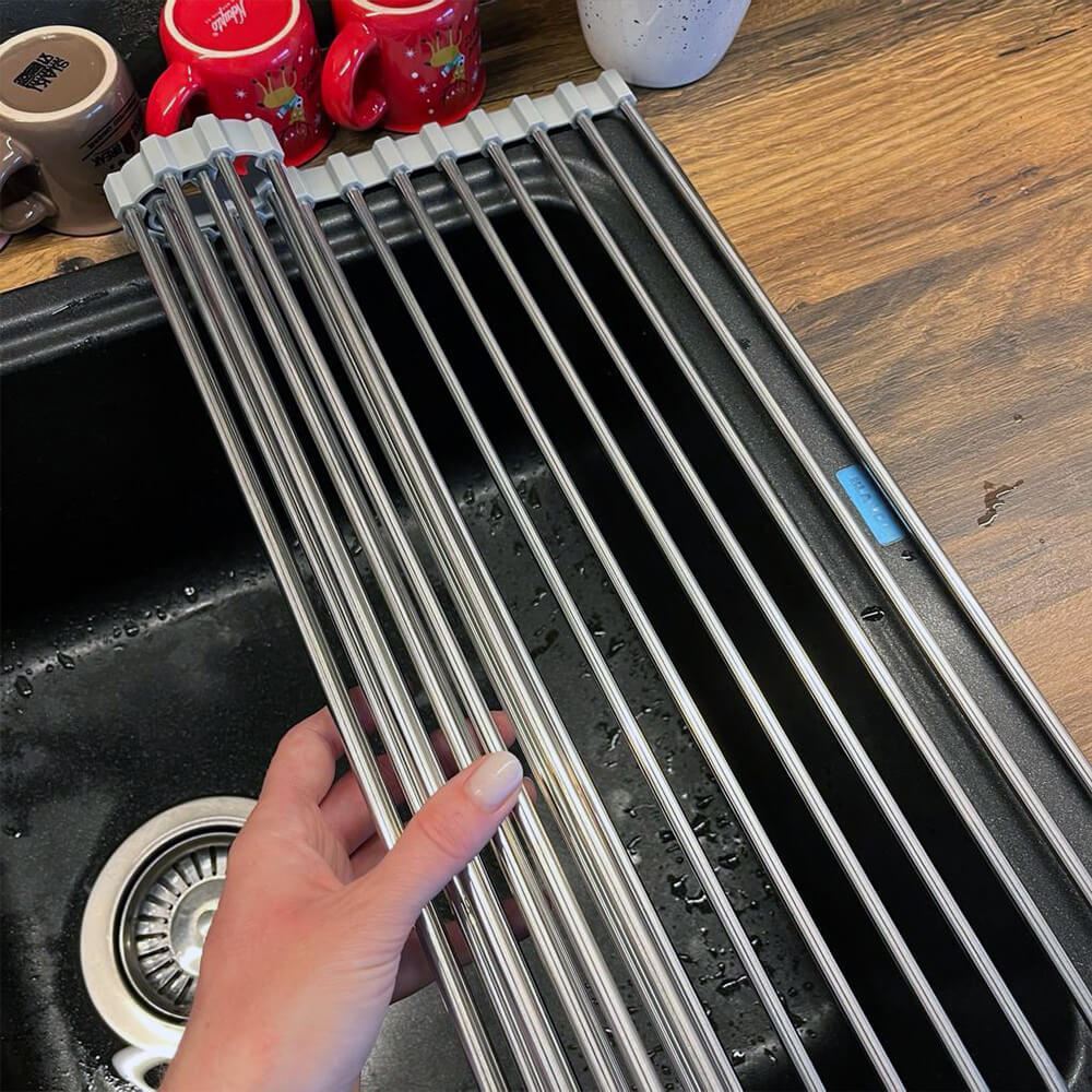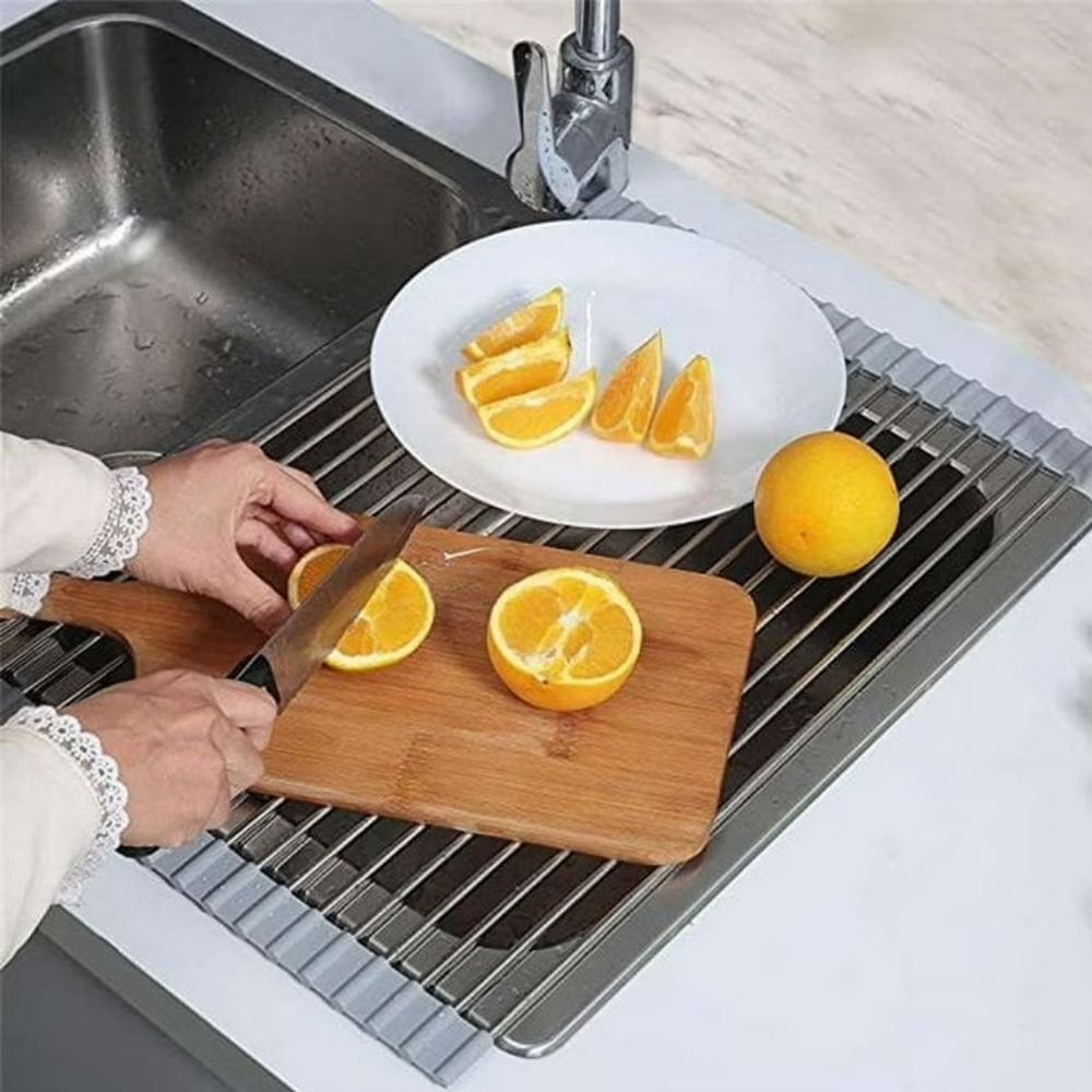 Skládací odkapávač na nádobí se stane nezbytností v kuchyni. Pokud máte v kuchyni málo místo bude tím pravým. Odkapávač snadno složíte a zase rozložíte. Pokud ho zrovna nebudete chtít mít na lince, složíte ho do ruličky a můžete ho umístit kamkoliv. Nezabere skoro žádné místo a budete ho mít tak při ruce. Odkapávač je velice stabilní. Výhoda tohoto odkapávače oproti klasickým plastovým odkapávačům je taková, že voda bude z nádobí stékat přímo do dřezu a nebude se nikde držet a třeba plesnivět. Odkapávač nemusíte ani nijak výrazně čistit, jelikož tam voda nikde nezůstává a nedrží se.