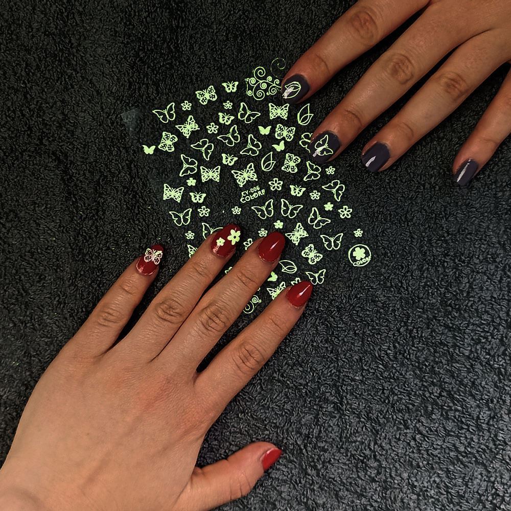 Krásné a upravené nehty můžete mít během chvilky. Svítící samolepky jsou vhodné na párty, večírky, plesy a další akce, kde může svítící manikúra nejvíce vyniknout. Použití samolepek je velmi jednoduché. Pinzetou stačí odloupnout vybraný kus a nanést jej na nehet. Po nalepení je vhodné nehet přetřít závěrečným průhledným lakem.