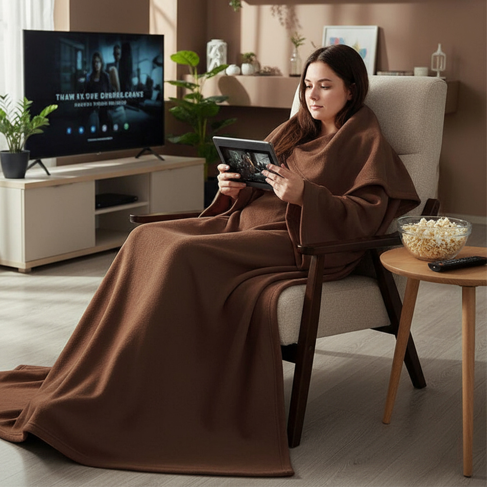 Televizní deka s rukávy! Hřejivý, příjemná a pohodlná! Tento typ deky zajistí ten největší komfort a pohodlí. Ať už se bude jednat o odpočinek u sledování oblíbeného filmu, čtení napínavé knihy, anebo jen poobědový spánek. Každý si televizní deku doslova zamiluje!