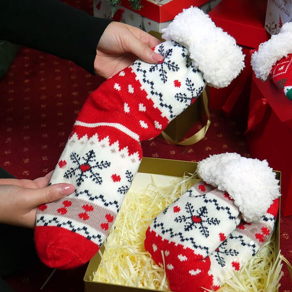 Teplíčko a pohodlí v hřejivých stylových ponožkách. Užijte si vánoční klid v pohodlí domova. Ponožky zahřejí vaše studené nohy a zároveň ještě více podtrhnou sváteční atmosféru. Ponožky v univerzální velikosti padnou na větší i menší chodidla a potěší nejednoho zmrzlíka jako dárek pod stromečkem.
