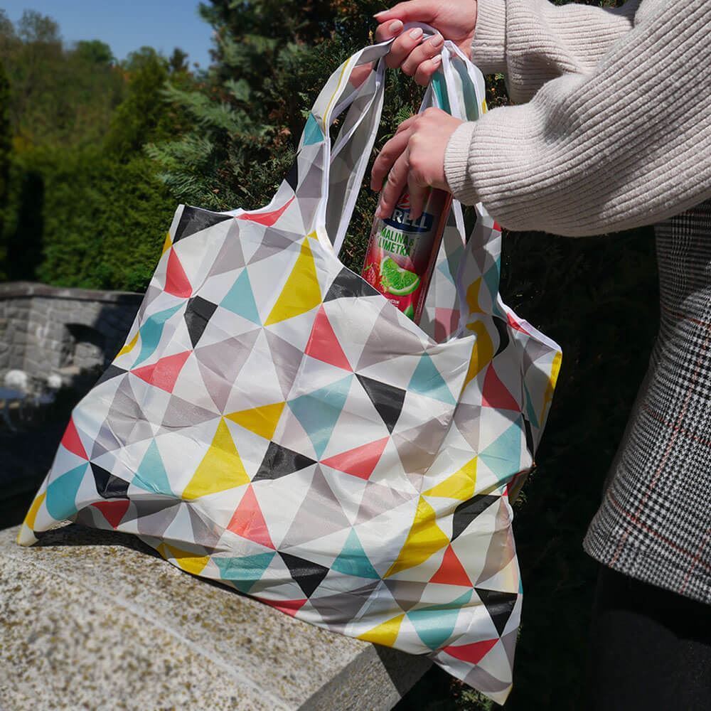 Nakupujte chytře s velkou skládací nákupní taškou, která je ekologická a stylová. Tašku snadno složíte do malé kapsičky, kterou si uschováte do batohu či kabelky a v případě potřeby rozložíte na další nákup.