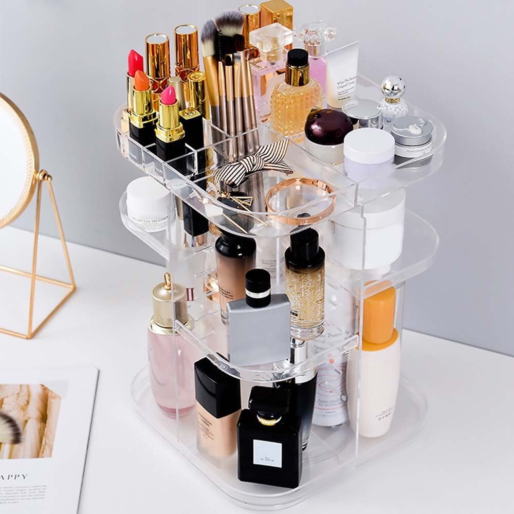 Ale ne! Rozbilo se vám to drahé sérum, které ještě před chvíli stálo na té přeplněné poličce? Zabraňte nehodám a chaosu ve vaší kosmetice a pořiďte si šikovnou vychytávku, která nesmí chybět všude, kde je větší množství kosmetických produktů. Pleťová kosmetika, makeup, ale i parfémy a doplňky budou v bezpečí uložené v poličkách tohoto otočného organizéru.