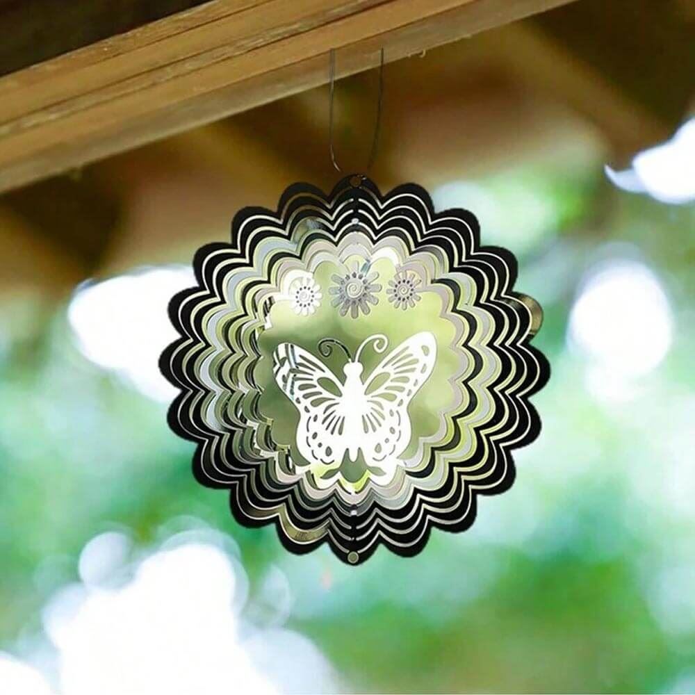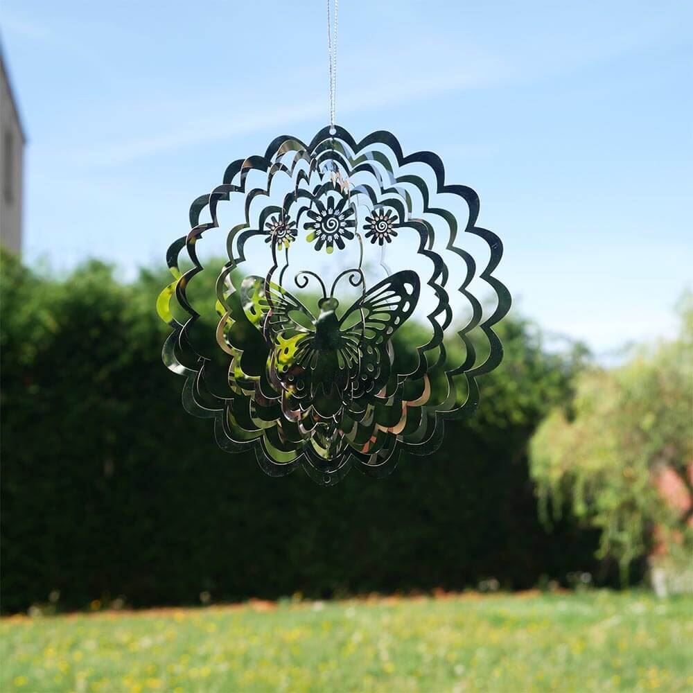 Pokud hledáte pěknou dekoraci na svou zahradu, tak tato stříbrná točící se dekorace bude tím pravým ořechovým! Okamžitě oživí jakýkoli exteriér, ale i interiér. Dekorace se pohybuje ve větru a odráží světlo, které na ní dopadá. Pověsit si ji lze za poutko na terasu či na balkon nebo může dělat parádu ve vašem interiéru. Umístění je už jen na vás!