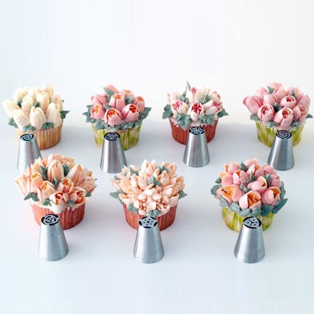 Zdobící sada na dorty vykouzlí krásné jedlé dekorace v podobě kytiček. V balení na vás čeká 7 nástavců s různými květinovými vzory. Po naplnění sáčku krémem a vložením nástavce, začnete tvořit krémové kytičky. Sáček naplňte tuhým máslovým, tvarohovým či pudinkovým krémem, který neteče. Skvěle vypadá i efektní ombré krém, který vytvoříte tak, že strany sáčku potřete jedním krémem a doprostřed dáte jinak barevný krém. Krémové kytičky vypadají tak opravdově, že je těžko rozeznáte od těch živých. Povzneste dorty, cupcakes či jiné dezerty na estetičtější úroveň!