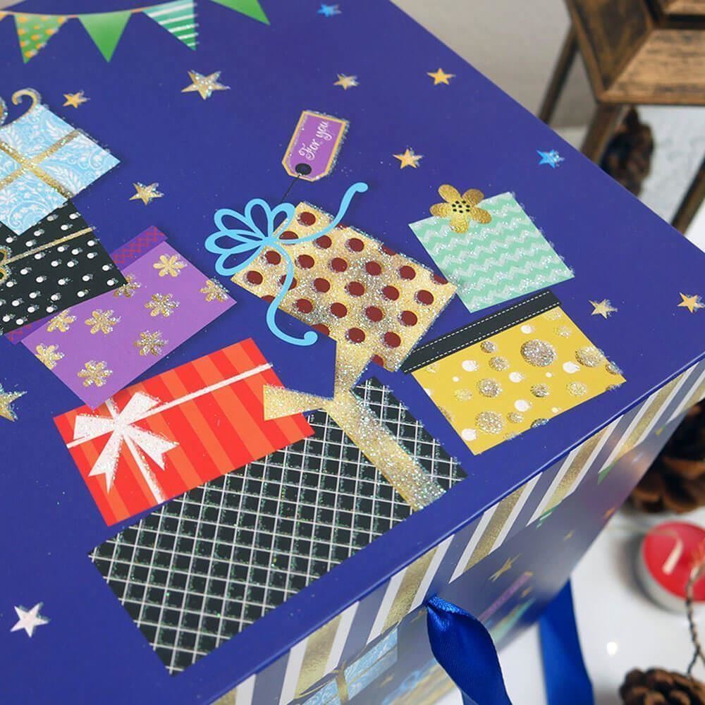 Koupili jste úžasný dárek, ale říkáte si, že se k němu nehodí žádná dárková taška nebo balicí papír? Vsaďte na dárkové krabičky, které jsou nejen efektní, ale i šikovné! Každá z těchto krabiček se odesílá v rozloženém stavu, ale to neznamená, že byste si měli přidělávat práci – naopak, jednoduše a bez lepení ji složíte a vznikne vám krychle o rozměru hrany 22 cm. Vybrat si můžete z několika motivů, které se hodí na všechny možné příležitosti, od oslav po Vánoce, nebo třeba na uložení drobností u vás doma.