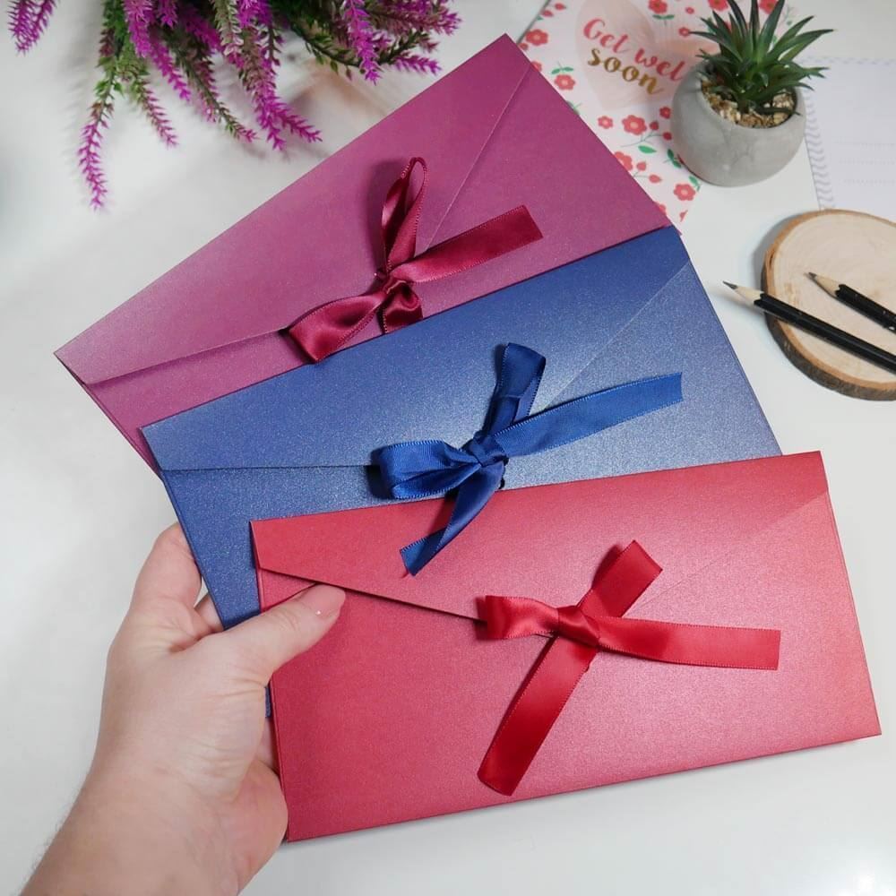 Dárková obálka poslouží na úschovu poukázek či peněz. Darujte zážitek či peníze v obálce v pěkném provedení s mašličkou. Věnujte ji k narozeninám, Vánocům nebo k Valentýnu. Dárková obálka je praktická a stylová. Určitě vaše blízké toto dárkové balení potěší.