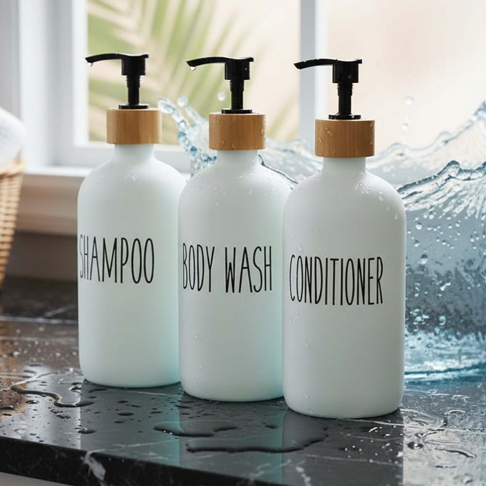 Dávkovače do koupelny jsou ideálním řešením pro každého, kdo chce skloubit krásu, praktičnost a ekologii. Tento elegantní set tří lahví nabízí přehledné uspořádání produktů, které využíváte každý den. Pumpičky dávkují rovnoměrně a plynule, což zajišťuje pohodlné používání bez zbytečného plýtvání. Díky možnosti opakovaného doplňování snižujete spotřebu jednorázových plastů a pomáháte chránit planetu. Každá lahev je popsaná tak, abyste přesně věděli, po čem sáhnout. Vaše koupelna tak získá nejen elegantní vzhled, ale i lepší organizaci a funkčnost.