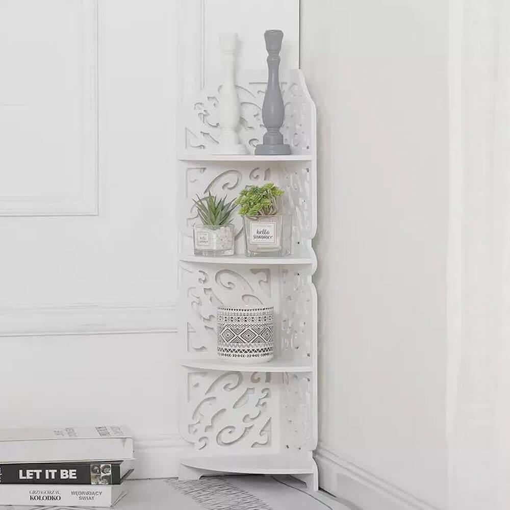 - Dekorativní čtyřpatrová rohová police