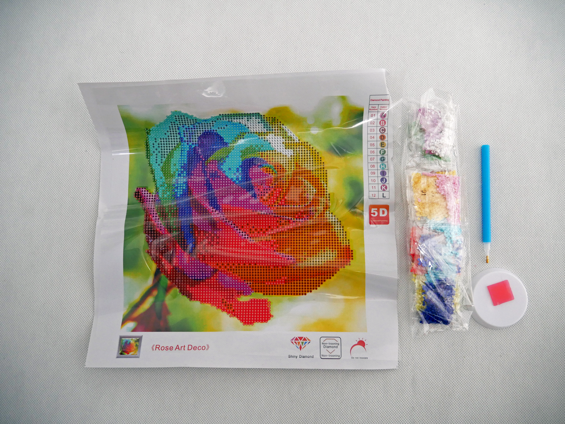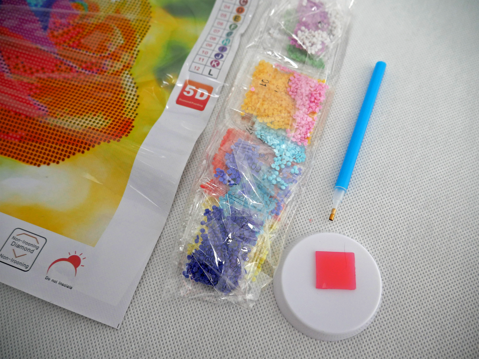 Plátno je zakryto ochrannou fólií, kterou sundávejte vždy postupně tak, jak budete aplikovat kamínky. Při sundání celé fólie najednou hrozí, že se ztratí viskozita lepidla a kamínky nebudou držet. Plátno obsahuje označení, která jsou umístěna i na sáčcích s kamínky. Dle těchto označení víte, kam který kamínek patří. Nejprve si do hrotu tužky naberte vosk, díky kterému se kamínky snadno přichytí na tužku. Kamínky tužkou aplikujte na plátno.