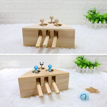 Dřevěná hračka je ideální, pokud chcete zaměstnat vaši kočku. Stačí stisknout jednu z dřevěných páček a je o zábavu postaráno. Na koncích dřevěných dírek vyskakují veselá zvířátka, které budou kočičku jistě velice zajímat. Nejprve kočce ukažte, že stlačením páčky zvířátko vykoukne, poté si již může hrát sama. S dřevěnou hračkou si skvěle vyhrají koťata ale i dospělé kočky a kocouři.