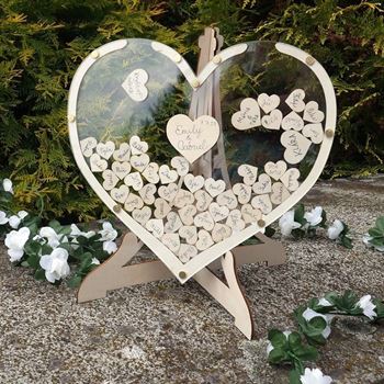 Ozvláštněte svou svatební výzdobu netradiční knihou hostů ve tvaru srdce. Hosté vám mohou na malých srdíčkách zanechat malůvku, podpis či vzkaz a vhodit jej do velkého srdce. Společně vám tak vytvoří krásnou vzpomínku na váš den D.