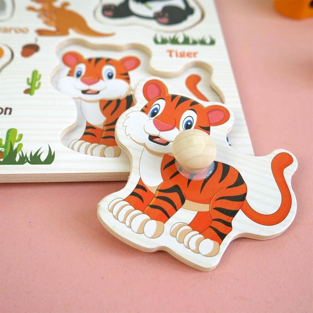 Chcete je zároveň rozvíjet tím správným směrem tak, aby jste podpořili jejich zdravý vývoj? Potom pro vás máme tuto nádhernou dřevěnou vkládačku, která na první pohled zaujme roztomilými barevnými motivy a vyzve děti ke hraní. Naučí se jak koordinaci a jemné motorice, tak i logickému přemýšlení, protože budou muset zjistit, kam daný kousek pasuje. Vedle každého obrázku je navíc jeho název v angličtině, takže se také v budoucnu naučí cizímu jazyku.