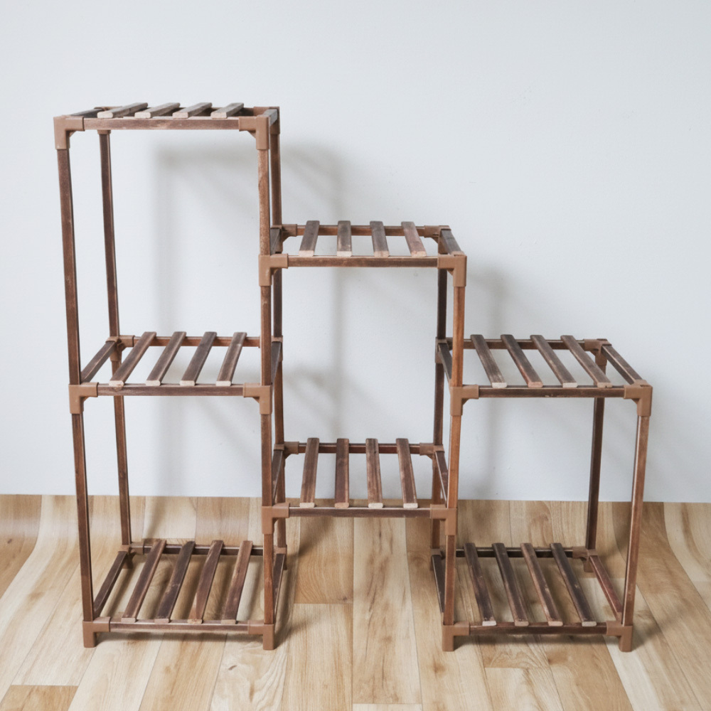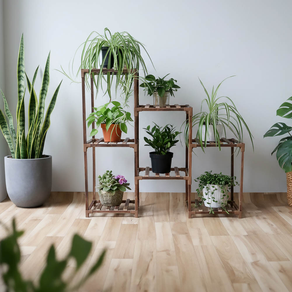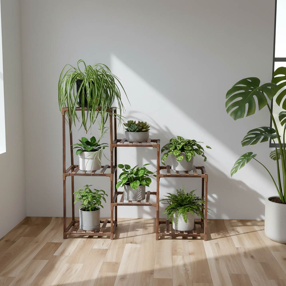 Máte doma spoustu rostlin, ale dochází vám místo? Tento praktický dřevěný stojan je ideálním řešením! Šetří prostor, poskytuje dostatek světla všem rostlinám a snadno se sestaví podle přiloženého návodu. Pokud zůstane nějaká police volná, můžete ji využít na další květiny. Součástí balení je i sada zahradního nářadí a zahradnické rukavice.