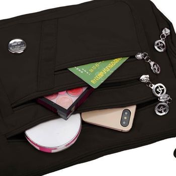 Mnohostranné kombinovatelná praktická kabelka přes rameno se stříbřitými detaily a dodatečnými kapsami na zip na přední, zadní i bočních stranách. Hlavní kapsa, kapsy na bocích, vpředu a vzadu se zapínají na zip. Uvnitř má kabelka podšívku.