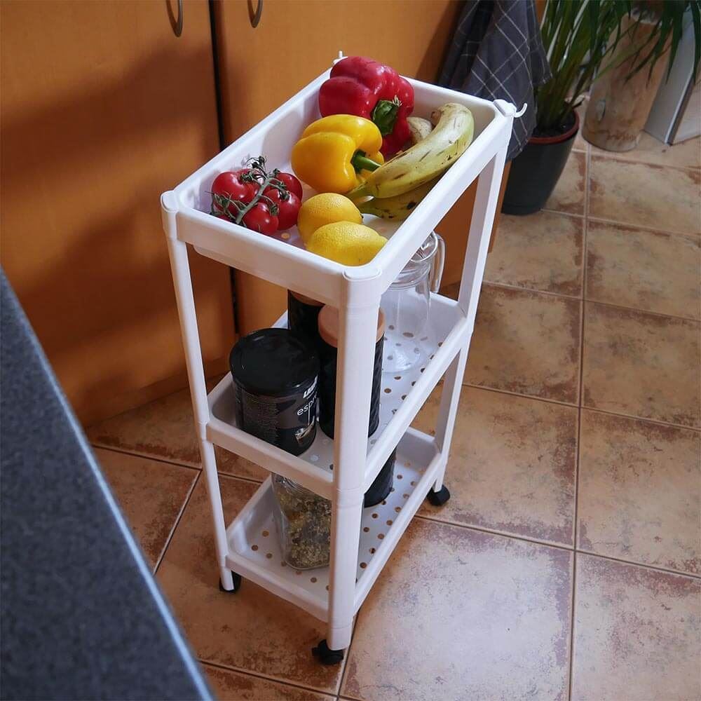 Tři patra zajistí úložný prostor například pro hygienické potřeby v koupelně, nebo pro sypké potraviny ve spíži, či pro kancelářské potřeby v pracovně. Dejte sbohem přeplněným poličkám a skříňkám.