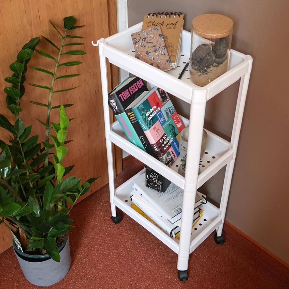 Ne každý máme doma možnost velkých prostorů a objemných skříní, a tak se musíme naučit pracovat s tím málem volného místa, které se zrovna naskýtá. Právě pro tyto případy je vhodný tento praktický regál na kolečkách, který na rozdíl od klasického nábytku nejen zabere méně místa, ale v případě potřeby jej snadno přesunete tam, kde ho bude zrovna potřeba.