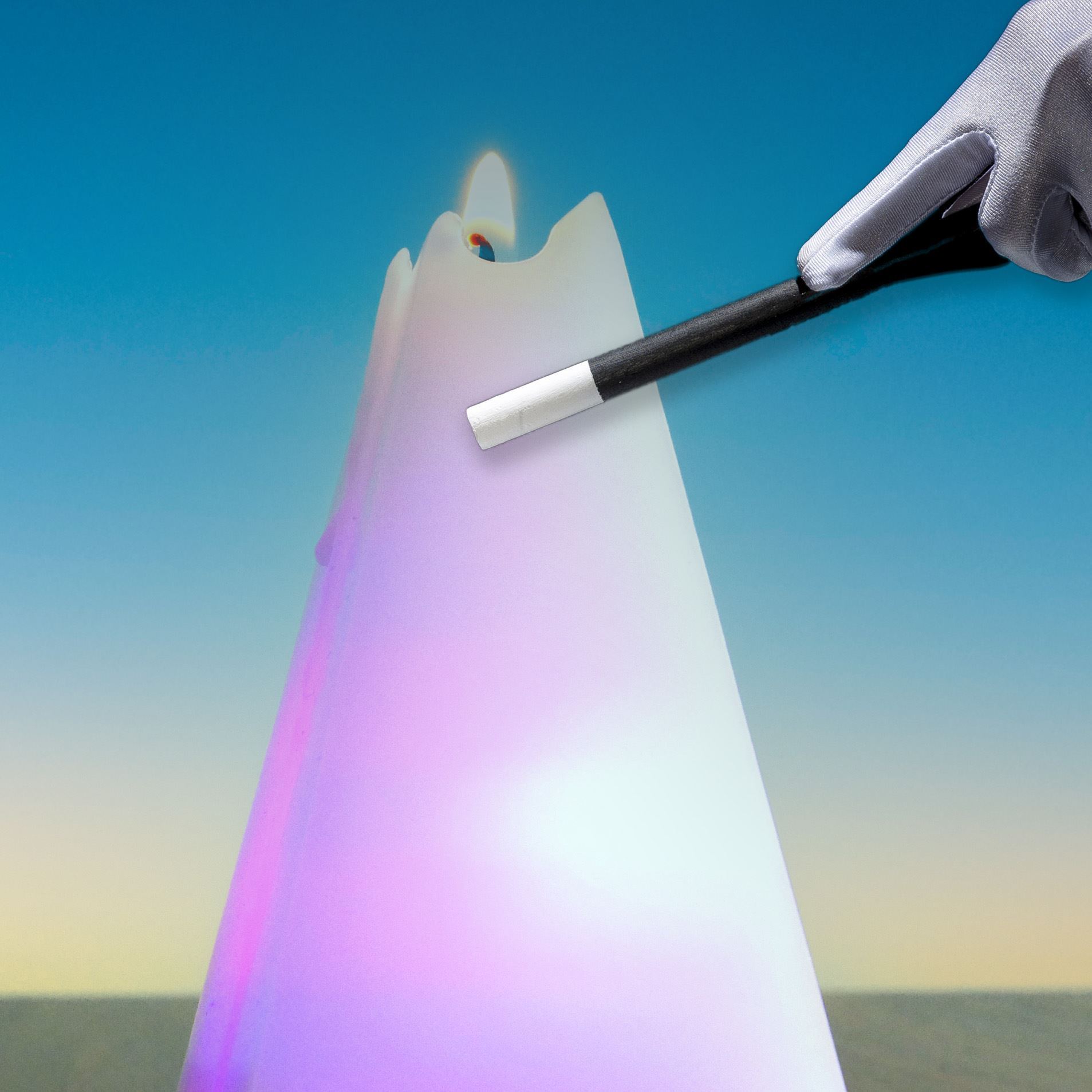 Nevšední svíčka, která po zapálení střídá barvy.