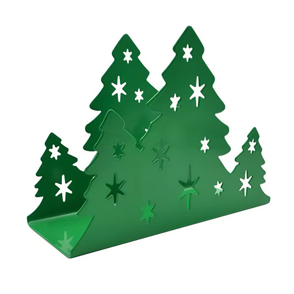 Kovový držák na ubrousky s motivem vánočního stromku je stylovým i praktickým doplňkem sváteční tabule. Udrží ubrousky uspořádané a zároveň dodá vašemu stolování kouzelnou vánoční atmosféru. Ideální pro každou slavnostní příležitost.