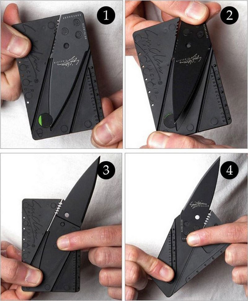 Tento praktický nožík je navržený a schovaný v kreditní kartě, proto ho můžete nosit neustále u sebe. Nezabere vám žádné místo a je krásně lehoučký. V případě potřeby ho snadno rozložíte a poté zase složíte. Karta má dokonale vytvořenou pojistku, proto se nemusíte bát, že by se mohl nůž sám otevřít. Otevře se, jen pokud vy budete chtít.