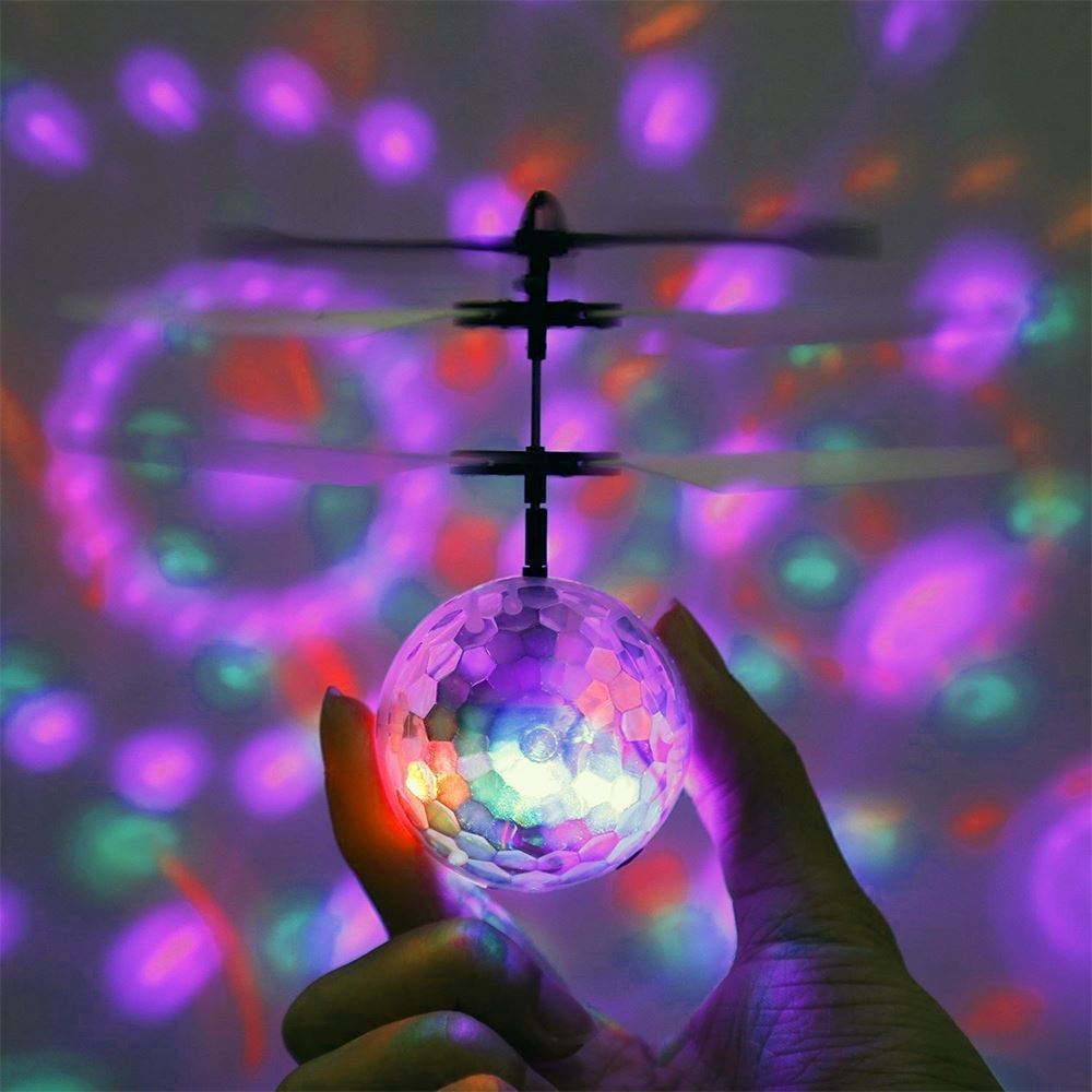 Zábava i pro dospělé! Zapněte létající disco kouli a uvidíte tu parádu. Disco koule reaguje na pohyb vaší ruky (infračervený symbol), takže pokaždé když se přiblíží k vaší dlani, tak se koule vynese vzhůru.