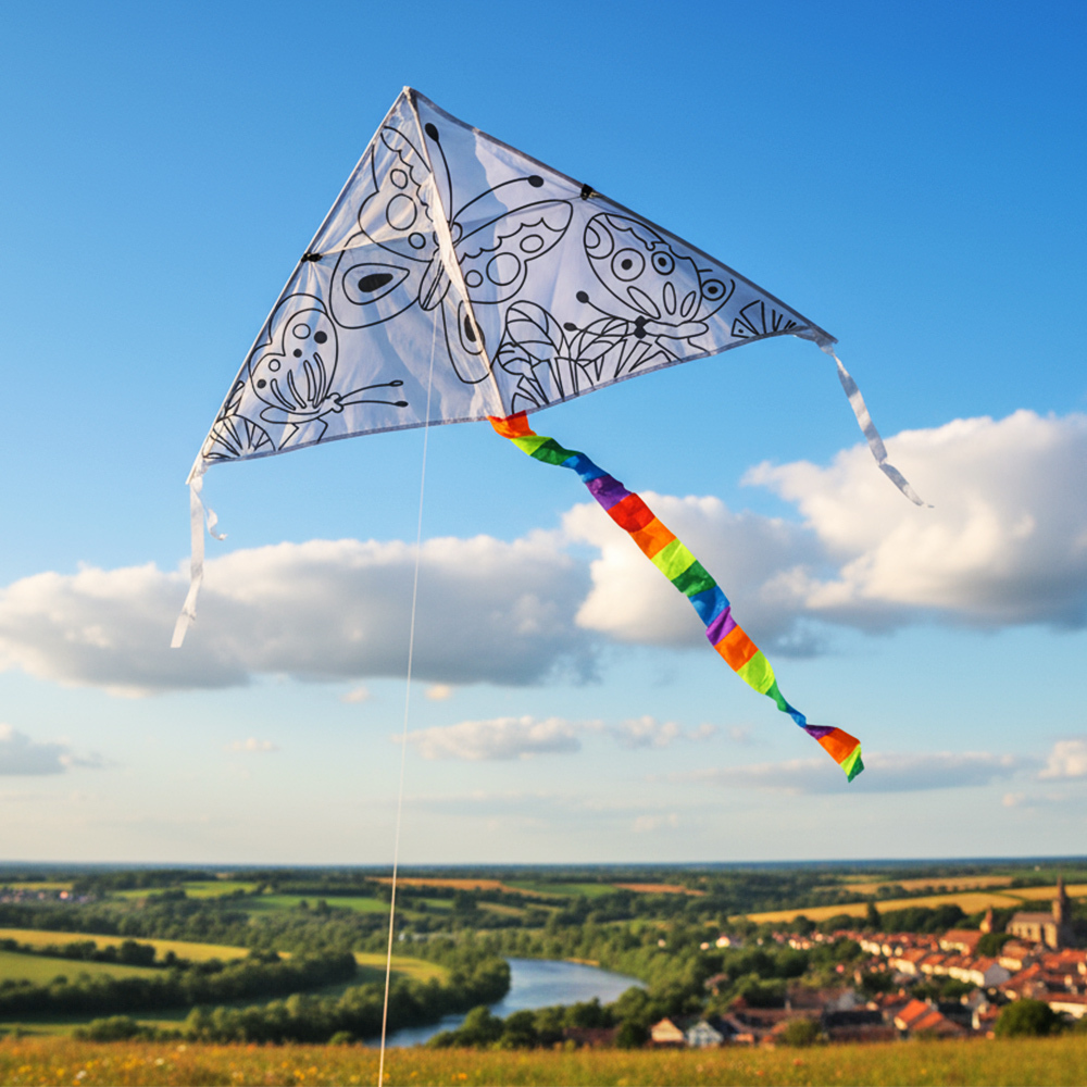 Tento krásný létající drak potěší malé i velké hned dvěma činnostmi. Můžete si ho totiž nejdřív vybarvit – součástí balení jsou i temperové barvy, které právě na toto můžete použít. A až máte vybarveno podle své fantazie, můžete jít draka pouštět ven. Díky svému trojúhelníkovému tvaru krásně létá a drží se ve vzduchu.